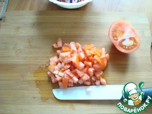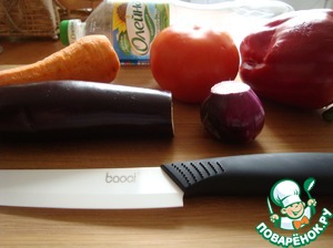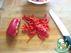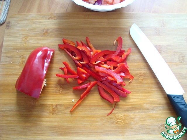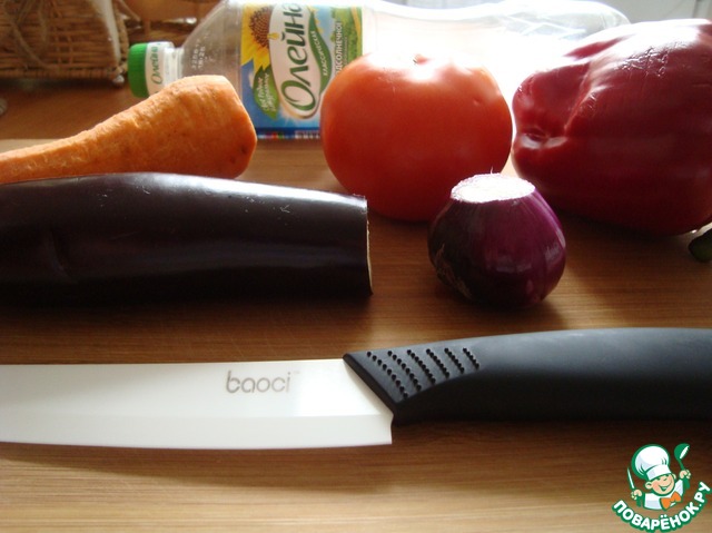 Баклажан режем вдоль и нарезаем полу-дольками прямо в шкурке.