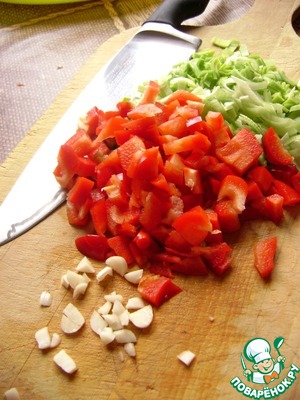 Нашинковать овощи кубиками, чеснок измельчить.