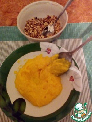 Вот наш крем готов, даем ему немного остыть и смешиваем с орехами.