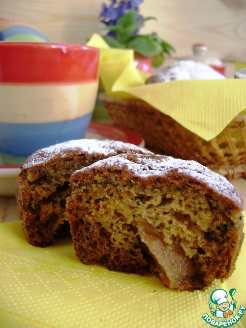 Рецепт «Ароматные кексы с маком, киви и грушей»:
