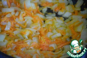 Морковь натереть на терке, лук нарезать. Обжарить на растительном масле до мягкости.