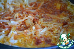 Добавить томатную пасту, влить 1 стакан воды и тушить на слабом огне до мягкости