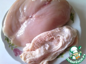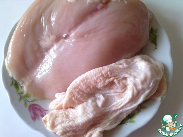 Для приготовления рулетиков нужна куриная грудка и кожа куриная.