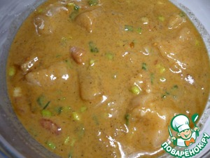 Взбиваем яйца и перемешиваем с остальными ингредиентами маринада.