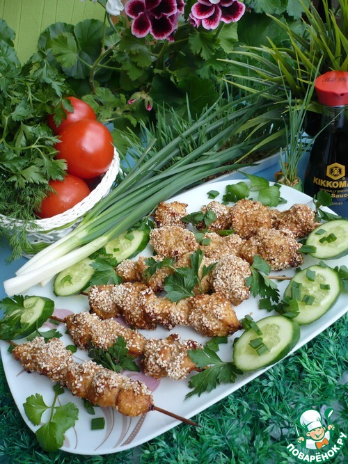 Трудно кого-то удивить шашлыками. Но можно попробовать, приготовить шашлыки из курицы, в особом маринаде и с семечками кунжута.