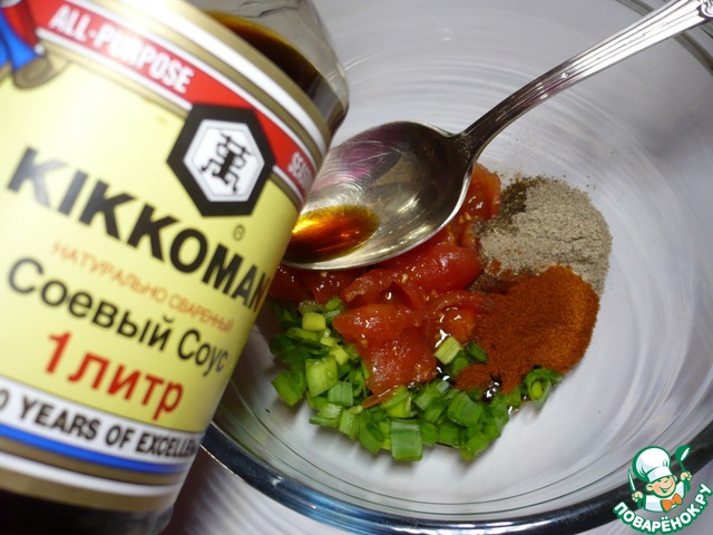 - Соевый соус (Kikkoman) — 3 ст. л.