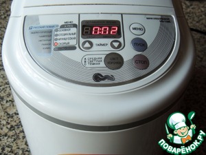После сигнала добавить к тесту мелко порезанные зеленый лук и укроп, чесночный порошок.