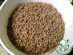 Через полчаса чечевица готова. Сливаем всю воду и хорошо промываем кипяченой водой