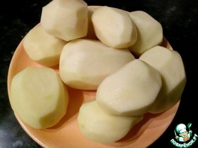 Чистим картофель. Уже очищенный взвесил. 800 грамм