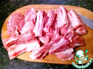 Вот такие замечательные ребрышки мне попались на рынке. Совсем не жирные. Отделяем их друг от дружки, моем.