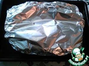 Сверху закрываем плотно, так же фольгой. Отправляем в духовку разогретую до 180 градусов на час. Через час верхний слой фольги убираем и оставляем в духовке чтоб подрумянились. Еще минут на 20