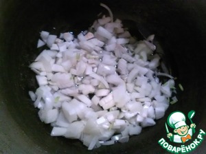 Режем лук и отправляем его тушиться в казан в который наливаем масло.