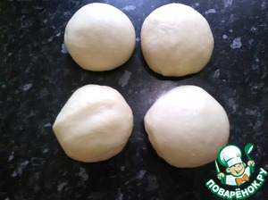 • Когда вся мука всыпана и тесто хорошо вымешано, накрываем его полотенцем и оставляем на пол часа в сторонке.