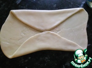 • Каждую часть раскатываем и смазав маслом складываем конвертом. Смазываем маслом все стороны.