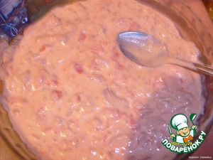 Смешиваем луково-помидорное изобилие с майонезом, можно в сковородке, можно в отдельной миске.