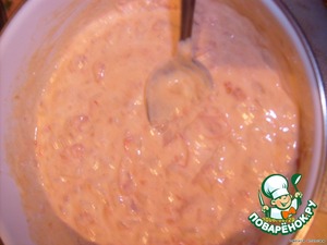 В той посуде, где мы собственно будем запекать рыбку, смешиваем кусочки филе с так называемым соусом.