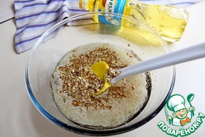 В жидкую медово-маслянную смесь всыпать рубленные грецкие орехи и ликер.