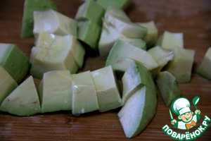 • Авокадо нарезаем на небольшие кусочки и сбрызгиваем лимонным соком.