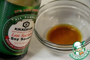 • Для заправки смешиваем соевый соус, лимонный сок и рисовый уксус.