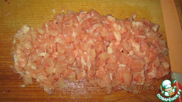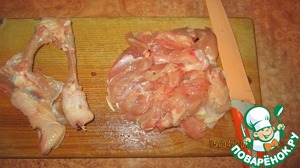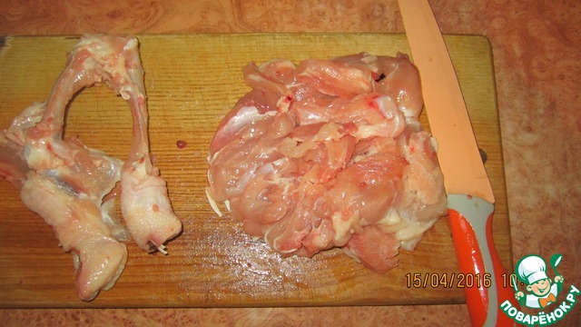 Пока тесто отдыхает, займемся начинкой. Для этого нужно отделить мясо от кости.