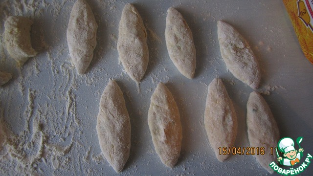 И лепим небольшие пирожочки (при жарке они вырастут).