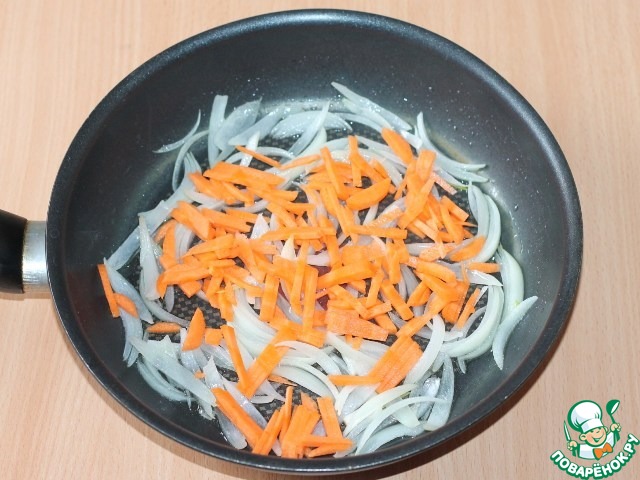 • 3. Добавить к луку порезанную соломкой морковь и тушить 2-3 минуты.