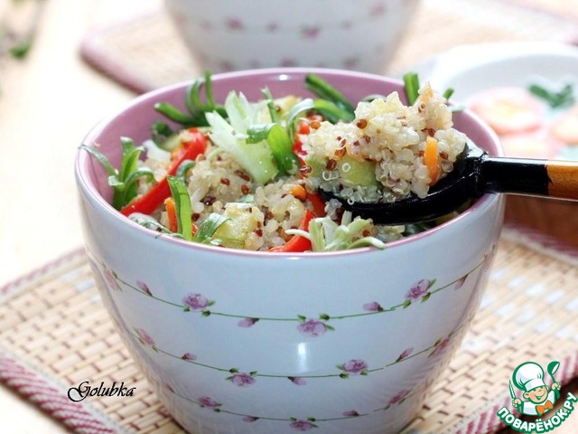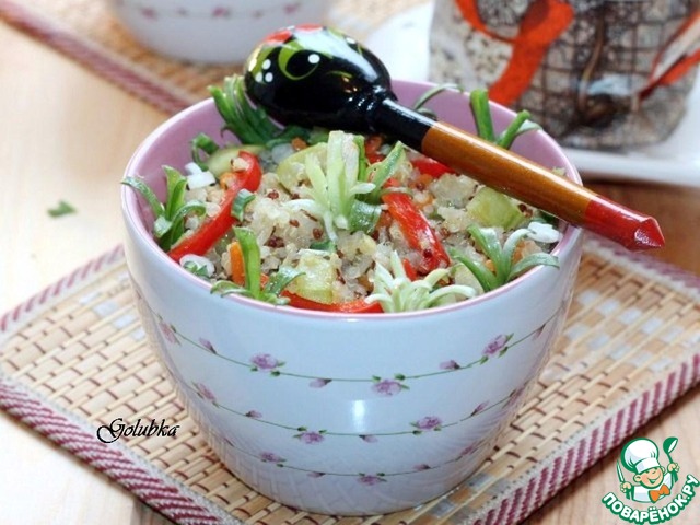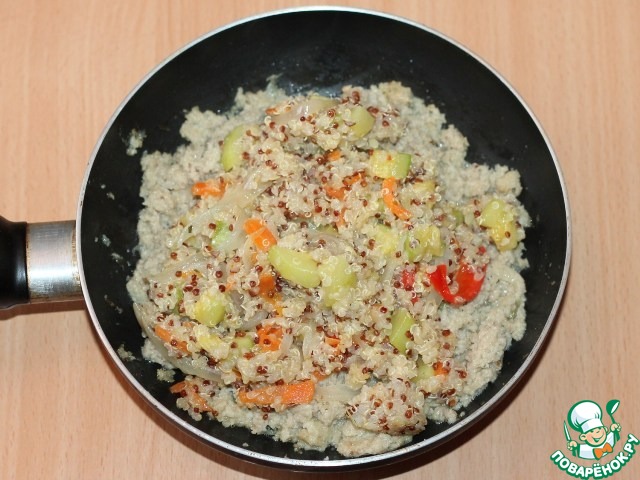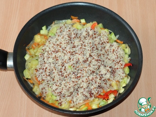 • 5. К готовым овощам добавляем киноа, перемешиваем и 2-3 минуты прогреваем с овощами. Постная основа готова!