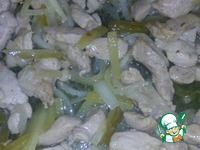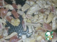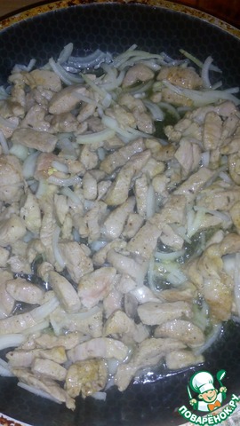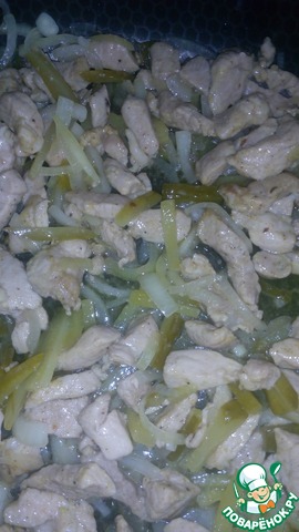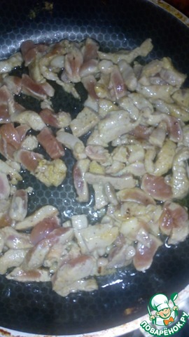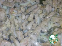 На большом огне обжариваете мясо пока оно не побелеет, огонь делаем на средний.