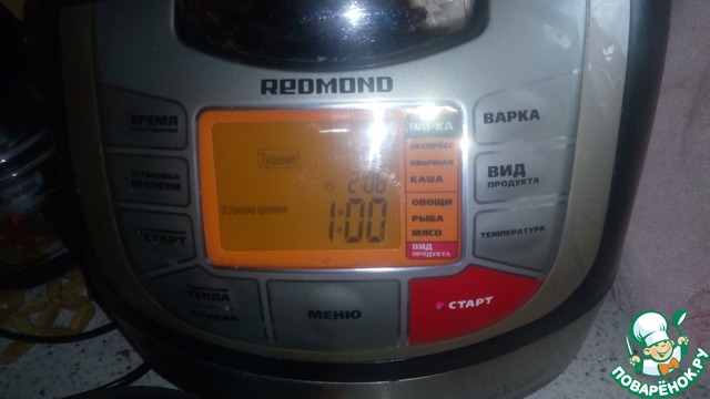 Стандартная программа: тушение на 40 минут. Гарнир любой: как крупы, макароны либо картофель. Приятного аппетита!