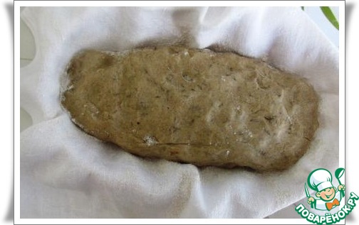 Если используете для расстойки корзинку, застелите её плотной тканью и щедро присыпьте мукой. Можно просто уложить тесто для расстойки прямо на противень, застелив его смазанным маслом пергаментом. Я уложила тесто в корзинку.