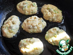 Жарим с двух сторон как обычные оладьи. Затем жарим следующую партию.