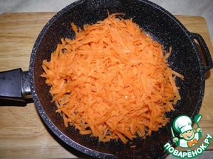 Морковь, лучше всего натереть на терке для корейской моркови (у меня в этот раз обычная терка) Обжарить до готовности