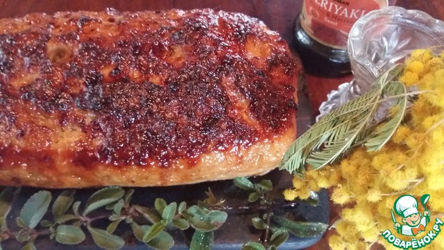 Запечь в духовке, разогретой до 180 гр., в течение 50 минут. За 5 минут до готовности смазать верх соусом-маринадом "Терияки" от ТМ "Киккоман".