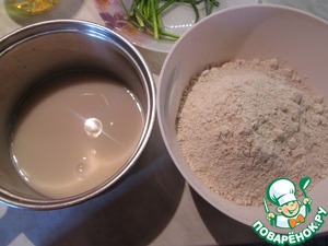 Дрожжи растворить в теплой воде, просеять муку. Все продукты для теста загрузить в хлебопечку и выбрать режим " Замешивание и подъем теста ".