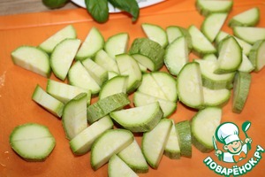 Кабачки нарезаем полукольцами.