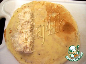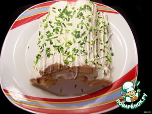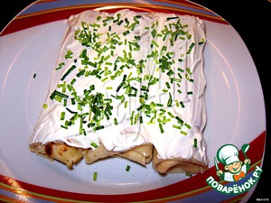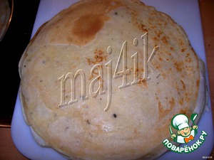 Сверху выложить пирамидкой следующие блинчики, промазать, итд.