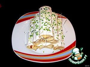 Вкусная и сытная пирамидка из нежных блинчиков с вкусными и пикантными начинками - отличная закуска и украшение стола.