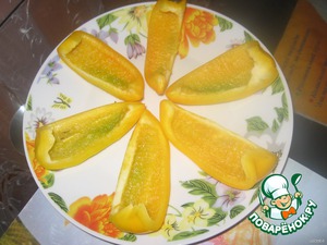Перец намазать сырно-яично-огуречной смесью.