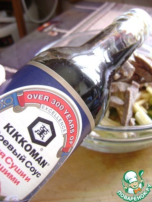 Выложить к овощам и полить соевым соусом от «Киккоман».