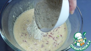 Добавляем муку. Перемешиваем. Можно муки добавлять больше - тогда оладушки более толстенькие получаются.