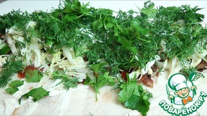 Равномерно распределяем зелень. Можно, кстати, если есть, добавить зеленый лук.