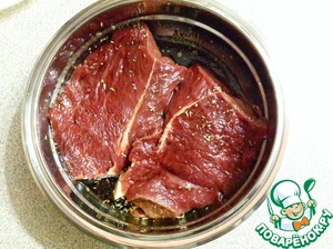 • Обвалять стейки в соусе и оставить мариноваться на 1 час.