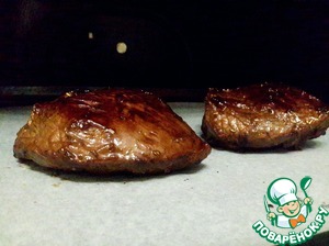 • Снять стейки с плиты и переместить из на противень и отправить в духовку на 25-30 минут.