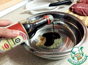 Смешать растительное масло, специи и соевый соус.