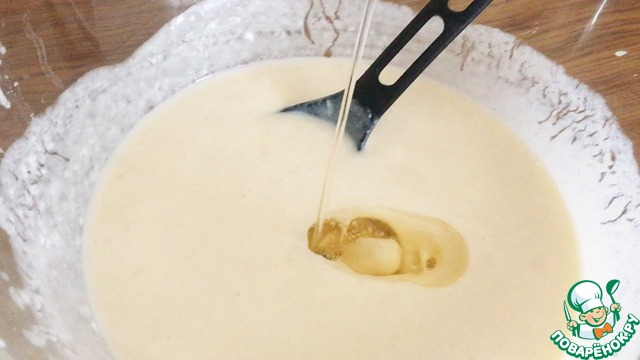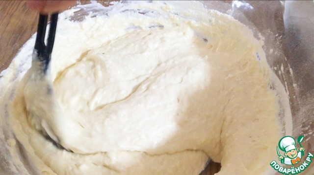 Добавляем муку. Тесто должно быть густеньким. Чтобы не текло с ложки.