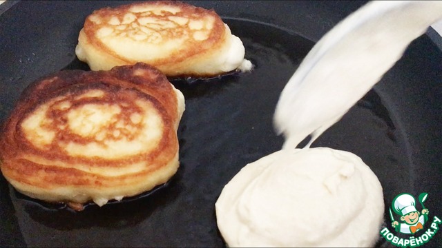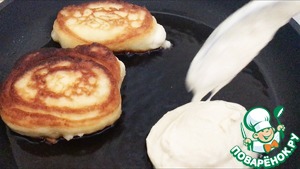 Теперь сверху делаем "крышечку" из теста. Дальше жарим, как обычные оладушки.