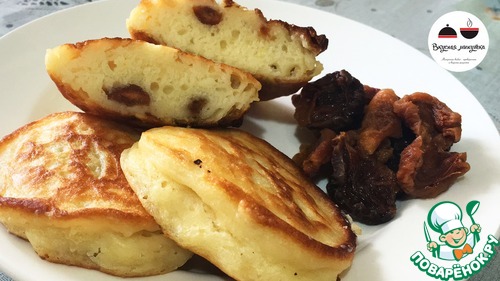 Рецепт «Пышные оладьи с начинкой из сухофруктов»: