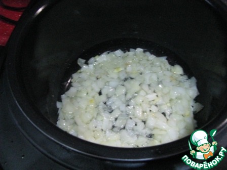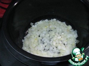 В чашу мультиварки налить масло. Включить программу "Жарка", выложить измельченный лук и морковь. Жарить помешивая 10 минут с открытой крышкой.