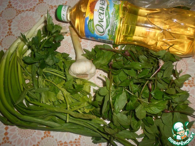 - Зелень (я использовала сныть(можно заменитьчеремшой, добавить укроп, базилик и т.д, т.е. зелень по своему вкусу)._) — 1 пуч.