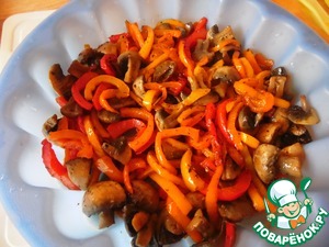 В силиконовую форму (или любую другую для заливного) выложить грибы и перец, разровнять.